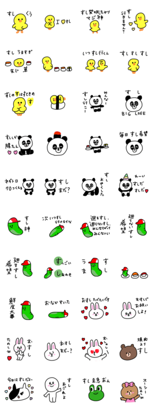 お寿司が好きなサリーとパンヨと仲間たち スタンプ画像一覧