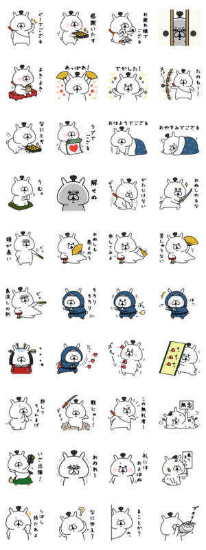 ゆるうさぎの武士語風スタンプです。家族や友達、彼氏彼女、先輩後輩、ママ友との毎日のトークにどうぞ。chococo より発売