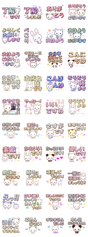 デカ文字で探しやすい敬語スタンプです。よく使う言葉と褒め言葉が多く入っています。見やすいので急いでいる時などさっと打てます。只今褒め言葉第2作、絵文字も発売中!yuzuhara より発売
