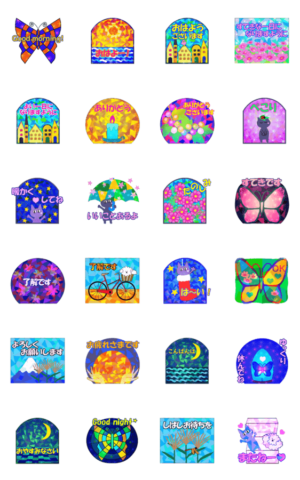 ステンドグラスのような「動くスタンプ」です。季節は秋から冬へと。SEA&SKYv より発売