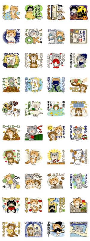 秋冬の毎日に使える心温まる猫さん達の敬語入りのスタンプです。