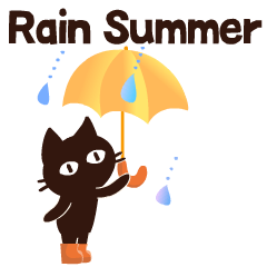 毎日使える!絵本みたいなねこ6は大人可愛い[デカ文字]夏の雨:英語Ver。仲の良いお友達や仕事仲間にも♪女子力高めで暑い日や雨の日にも使いたくなる♪