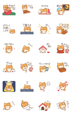 ぽっちゃりした柴犬の動く可愛いスタンプです♪日常使いしやすい言葉が入っています。DECOR より発売