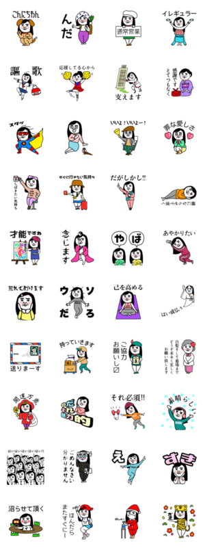 知る人ぞ知る人気スタンプの第11弾! めんこいブスがまたまたまたまたまたまたまたまたまたまた貴方に代わって気持ちをお伝えします。ヨリカーマン より発売