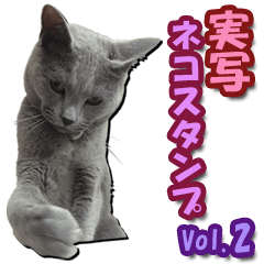 ネコ(ロシアンブルー)の写真を使ったスタンプ第2弾です。ねこが好きな人にぴったり! 日常会話で使いやすい便利な言葉が揃っています。Gray Tail より発売