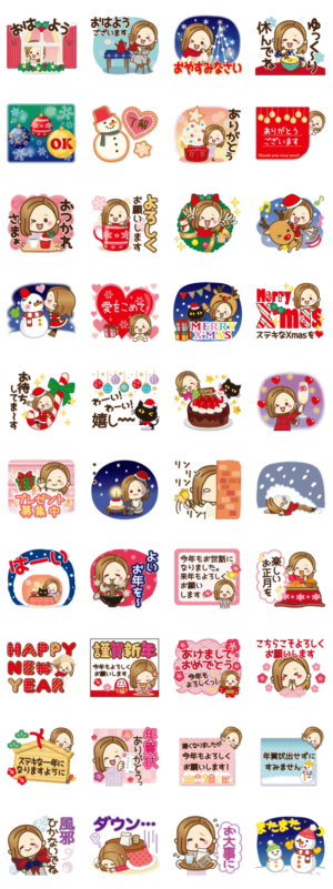 冬の楽しさ満載のスタンプです。冬に嬉しいクリスマス風のイラストに日常使いできる言葉やリアクションを入れました♥お正月(年賀状)もあるので、年末年始も安心です〜♪紅おれんじ より発売