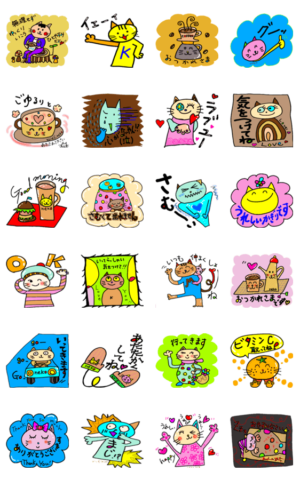 カラフルポップなかわいいnekoちゃんのスタンプです。 えびばでぃ気分でHappyお届けしますにゃんjamukao11 より発売