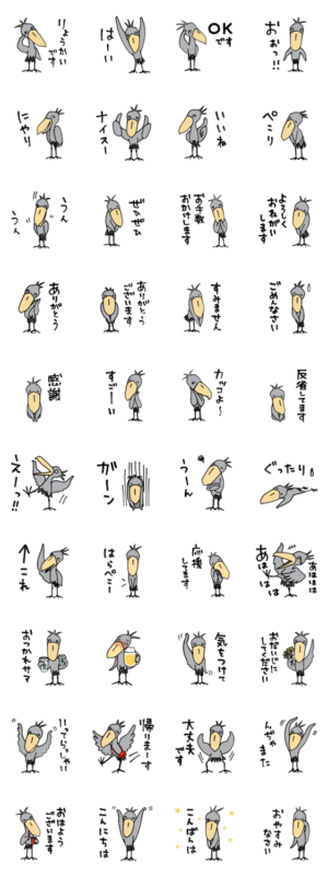 ハシビロコウの日常会話に毎日便利なスタンプです♪トマト より発売