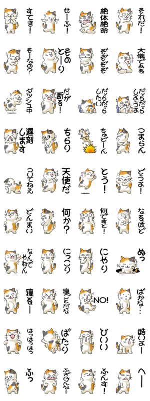 50温順に並んだ全160語の「す」〜「へ」です。このスタンプは猫大好き!(大)その20(す〜へ)のノーマルサイズ版です。たたら より発売