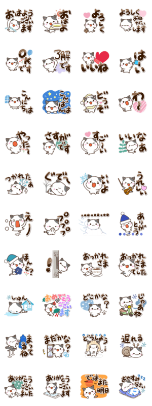 『ちびブチ』の、ぶち猫スタンプの【冬】編です。シンプルな文字に、毎日よく使う言葉に冬の飾りを加えたネコスタンプ。ねこ好きな方にぜひ。【かたこ】かたこ より発売