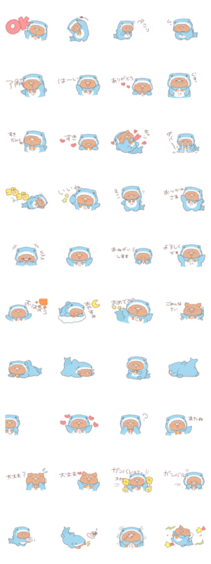 サメの着ぐるみを着たわんこスタンプです。かまってほしい時などにオススメです!駄菓子屋 より発売