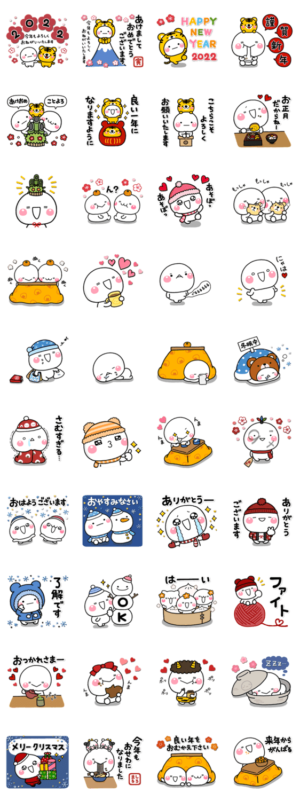 冬に使えるスタンプ/クリスマス/年末/お正月/節分/バレンタインとたっぷり詰め込んだしろまるのスタンプです。こちらはリニューアルverのイラストとなります。