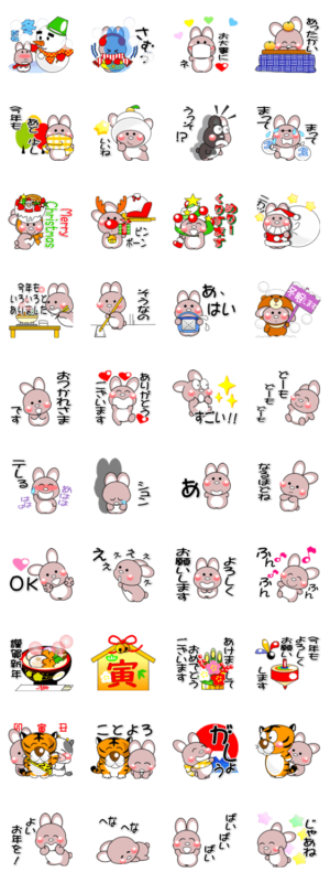 おはぎ色したウサギ おはうさの楽しくて毎日使いたくなる冬用スタンプです。ohausa より発売