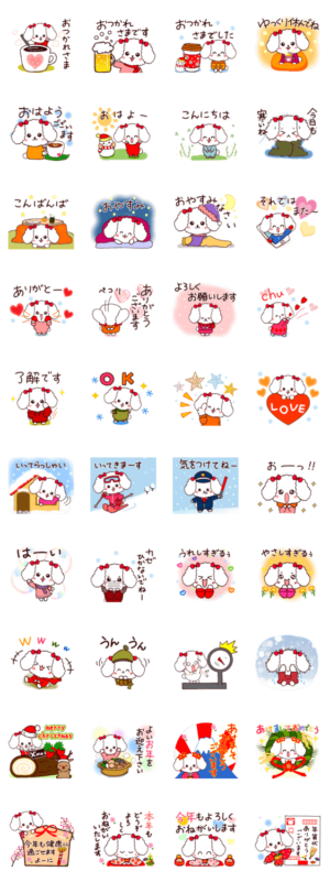 トイプーちゃんの冬スタンプ。よく使う日常会話と年末年始に便利なスタンプ。クリスマス/お正月/寒い冬/トイプードルhirahira より発売