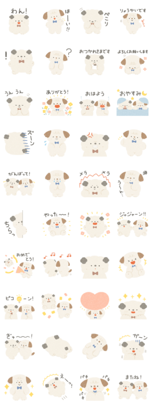 小さくてコロコロしたわんちゃんのスタンプでするびあな より発売