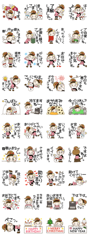 いつも元気なポニーテールの女の子、おちゃめの冬の敬語編です。誕生日、クリスマス、年末年始、お正月などなど。文字の枠は白にしてありますので黒い背景でも大丈夫です。おちゃめ より発売
