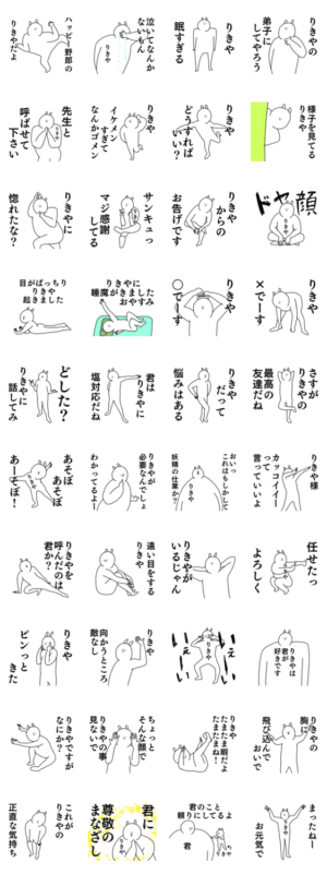 りきや君が使えるスタンプです。シュールで面白いバージョンです。リキヤ、力哉、力也、力弥、力矢など。