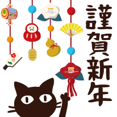 毎年使える!ナチュラルで絵本のようなねこのスタンプ7!年末年始Ver。謹賀新年,あけおめ等,年末年始のあいさつを楽しくしよう!大人可愛い女子向けでダルマやあかべこも♪