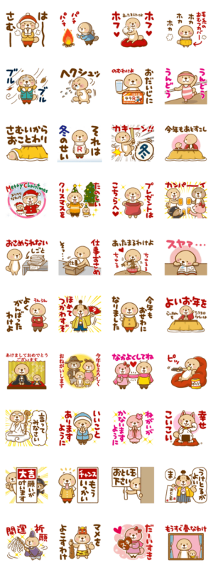 おなじみラッコさんの冬のスタンプ第3弾。寒い日やクリスマス、年末年始、節分、バレンタインなどの冬のイベントがひととおり入って便利ですsatoco より発売