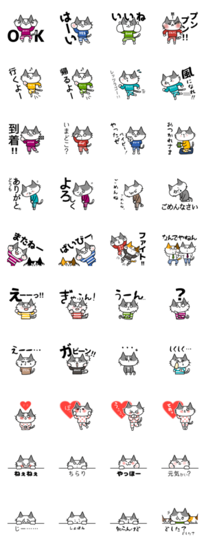 第八弾【ふくねこのまいにち】 日常で使える服を着たねこのスタンプ。 仲良しのともだち、家族、大好きなあのひとへ。 グレーのハチワレ猫バージョンです。