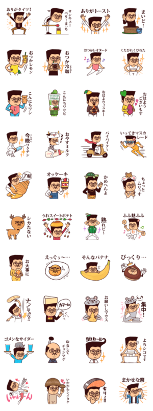 ぷりてぃマダム似の中年おじさん。シンプルな日常会話や関西弁で家族間の連絡、ダジャレ好きの父へのプレゼントにも。子供心を忘れないシュールな大人のだじゃれスタンプ。KAGE310 より発売