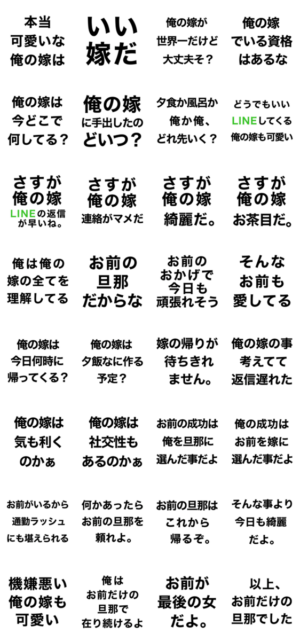 日ごろの感謝をうまく伝えられない時に使える嫁スタンプです。たくさん褒めましょう。