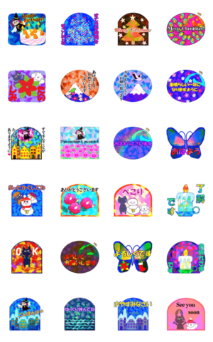 艶やかな色彩に心躍るスタンプです。楽しい気分になるので冬に使いたくなりますね。