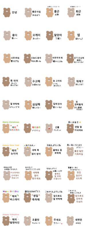 くまちゃんの韓国語ルビなし 冬イベントver スタンプ画像一覧