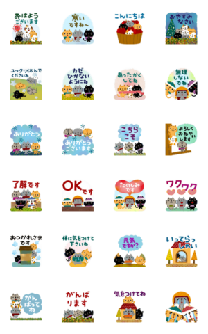 絵本みたいな*飛び出す*ねこねこねこ(冬) スタンプ画像一覧