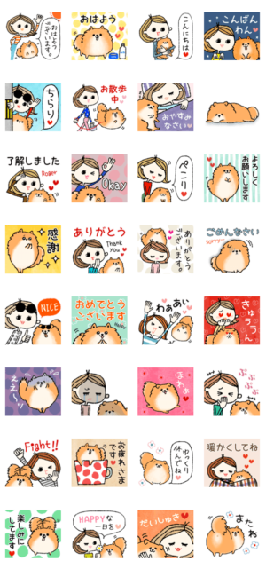 日常に使える♪ポメラニアンちゃんとあなたのオトナ可愛いスタンプです♡