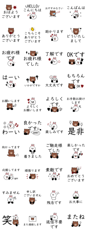 大人でも使いやすいシンプルなブラウンとコニーの敬語スタンプです。毎日の日常に。