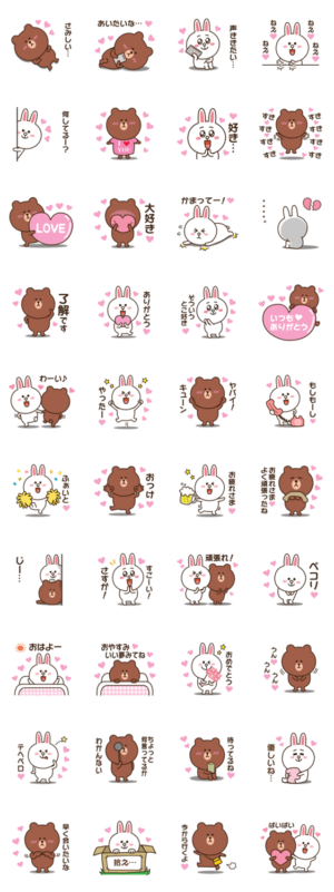 ブラウン&コニーのラブラブスタンプです♪恋人や友達に大好きな気持ちを表現しましょう♪ ※BROWN & FRIENDS をみんなでつくろう!キャンペーン参加スタンプですパン より発売