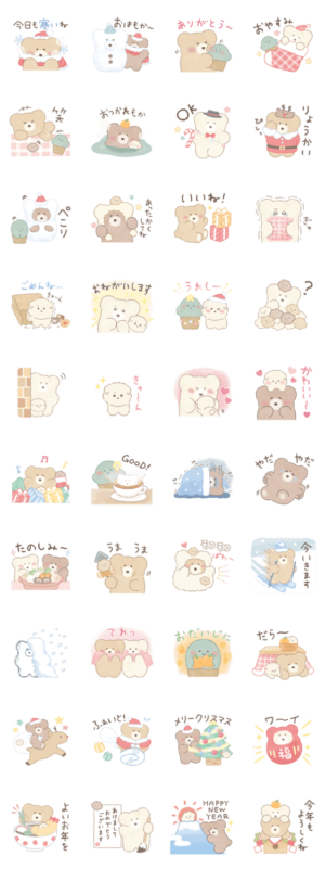 モコモカのほっこりとした冬のスタンプが登場!くまのようなふしぎな生き物のモコモカとクリスマス・年末年始・お正月もいっしょ♪ぽかぽか温まるイラストがいっぱいです!くーりあ より発売