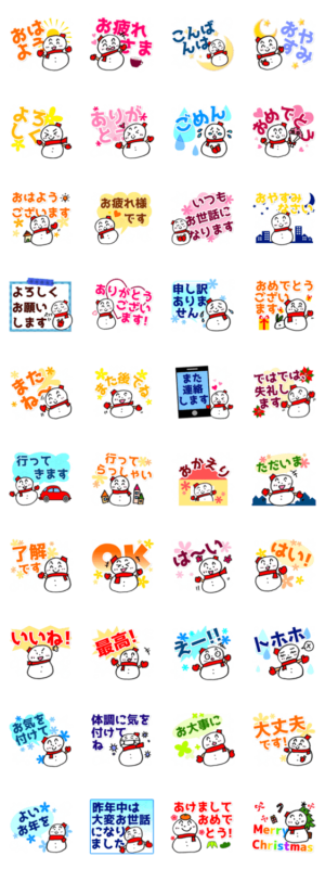 使うと雪が現れる!雪だるまのデカ文字挨拶 スタンプ画像一覧