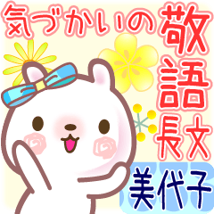 長文の気づかい敬語名前スタンプ。秋から冬の季節の表現も。美代子、みよこ、ミヨコ、miyokoさん等に。他の名前や他の漢字は【お探しの名前】+【長文気づかい敬語】検索で
