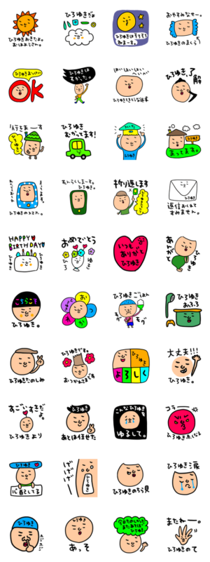 ひろゆき専用名前のスタンプ。よく使う言葉でセットにしましたー!かわいいものからシュールなものまで。riekim より発売