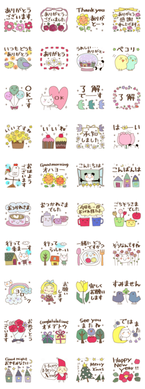 こんな大人可愛いスタンプ探していました。ちょっと丸っこい絵がホッとしますね。