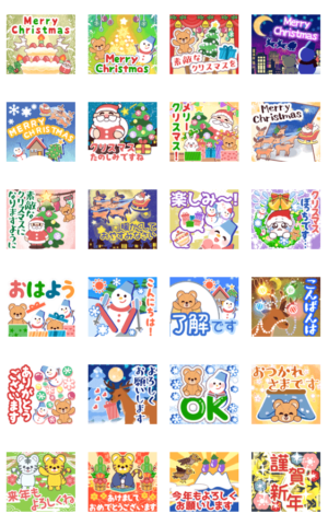 クリスマスや年末年始を飾る素敵なスタンプです。とても賑やかなのが良いですね。