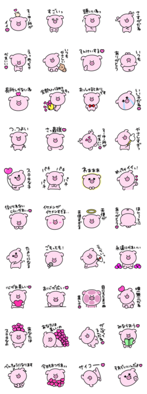シュールなミニぶたの褒めちぎるスタンプです。eribo より発売
