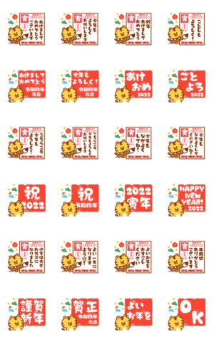2022年/新年の挨拶/あけましておめでとう/今年もよろしく/年賀/正月スタンプ/令和4年/謹賀新年/元旦/虎/トラ/お年玉/大晦日/年越し/よいお年を/お正月/初詣/年末年始じゃむばたチーズ より発売