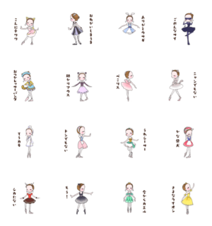 キュートで可愛い女の子のバレエのスタンプ。動物のコスプレのダジャレスタンプ。日々の日常にも毎日使える。家族,友達,恋人に。お洒落。プレゼント、贈り物にも。balletパンもち子 より発売
