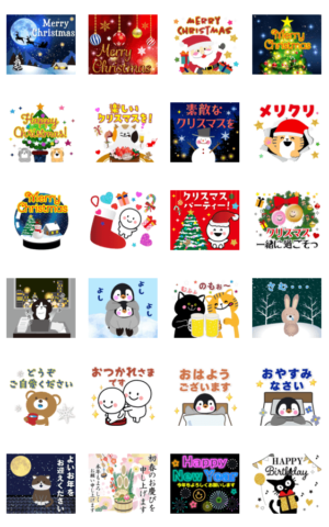 大人っぽい雰囲気からかわいい系までクリスマスのスタンプがいっぱい♪おはよう・おつかれさまですなどの日常と年末、お正月の年賀状、誕生日まで盛りだくさん#ねこ