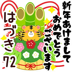 はづき/ハヅキ専用72。正月/お正月/年賀/寒中見舞い/年賀状/寅年/あけおめ/ねことうさぎの名前スタンプ番外編/山田まぽん作。※他の名前は「○○専用72」で検索★山田まぽん 新 名前スタンプ より発売