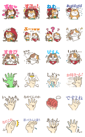 カワイイ犬のスタンプかと思いきや、半分は手がモチーフのキャラクター🤣しかも微妙に頭身が高いのがウケる!