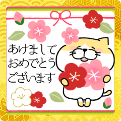 敬語大目で毎年使えるネコちゃんの見やすいBIGスタンプです。