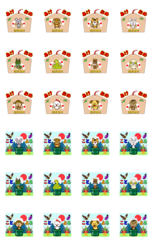 毎年使える年始挨拶スタンプです。(あけおめ、ことよろ、正月、十二支、 よろしく、年賀状、Happy New Year)morimithu より発売