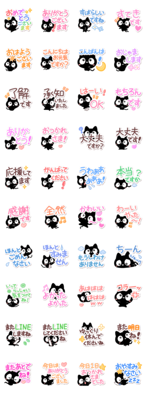 【クロネコすたんぷ】の大人の敬語編です。丁寧な言葉や、よく使うあいさつ等を集めた、黒猫スタンプ。くろねこ好きな方にぜひ。【かたこ】かたこ より発売