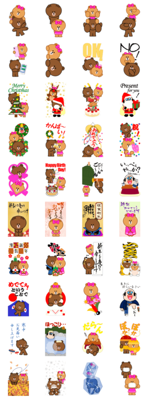 BROWNとCHOCOのクリスマス&年末年始仕様のスタンプです。年賀状替わりにもなります。毎日使いできるものも。文字なしスタンプはトーク文章との組み合わせ無限大!か? ※BROWN & FRIENDS をみんなでつくろう!キャンペーン参加スタンプです