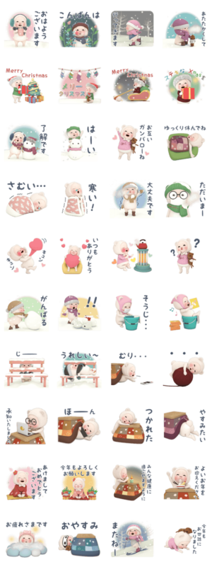クマタオルの【冬、クリスマス、年末年始、日常】スタンプです。DanSian より発売