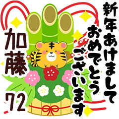 加藤/専用72。正月/お正月/年賀/寒中見舞い/年賀状/寅年/あけおめ/ねことうさぎの名前スタンプ番外編/山田まぽん作。※他の名前は「○○専用72」で検索★山田まぽん 新 名前スタンプ より発売